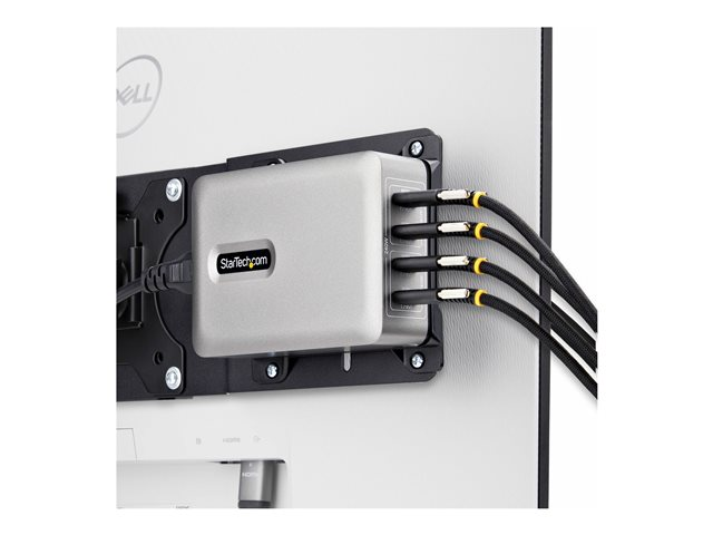 USB-C-laddaren med 4 portar från StarTech.com levererar kraft och mångsidighet, vilket gör den till ett perfekt val för laddning av flera enheter samtidigt. Med utgångsalternativ på 5 V, 9 V, 12 V, 15 V, 20 V och 28 V och en total effektkapacitet på 240 watt passar den här laddaren ett brett utbud av surfplattor, mobiltelefoner och bärbara datorer. Med GaN-teknik och programmerbar strömförsörjning (PPS) säkerställer den effektiv laddning samtidigt som den skyddar dina enheter med avancerade skyddsåtgärder som överhettnings-, överspännings- och överströmsskydd. Dessutom uppfyller den här laddaren många standarder, inklusive UL, FCC, RoHS och USB-IF, vilket garanterar en pålitlig och säker laddningsupplevelse. Den är utformad med säkerhet i åtanke och har både Noble Wedge- och Kensington-säkerhetsluckor samt ett skruvlåssystem för ökad stabilitet. Med en praktisk strömkabel på 1,8 m och fyra 24-pin USB-C-utgångar är den praktisk för daglig användning.