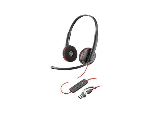 Blackwire 3200 Series - headset - på örat - kabelansluten - USB-C - svart - Skype-certifierat, Cisco Jabber-certifierad, Avaya-certifierad, UC-certifierad