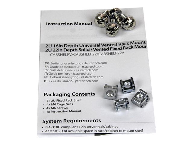 StarTech.com 1U Server Rack Shelf, 2U 22in Universal Fixed Vented Network Rack Shelf/Cantilever Tray for 19" AV/Data/Network Equipment Enclosure w/Cage Nuts & Screws, 50lbs Weight Cap.