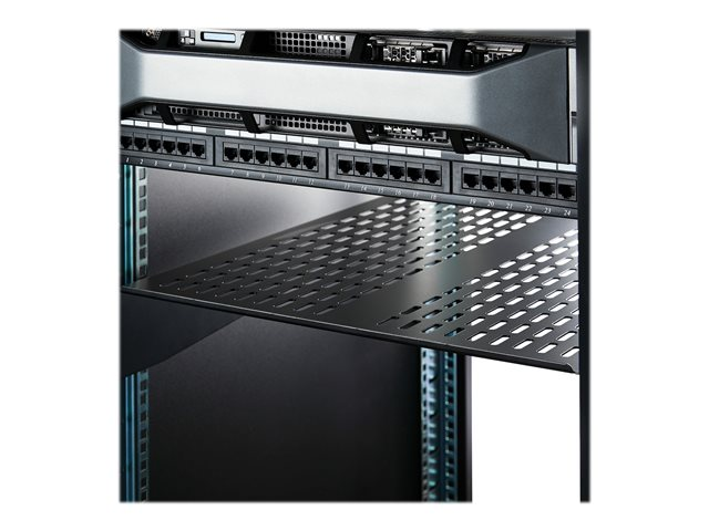 2U Network Rack Shelf (CABSHELF22V) - Hylla för rack - svart - 2U - 22" - för P/N: RK12OD2, RK2433BKM, RK2537BKM, RK3236BKF, RK4236BKB, RK4242BK24, RK4242BK30