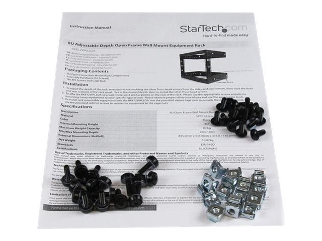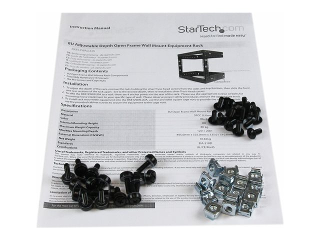 12" Deep 2 Post Open Frame Server Room Rack for Data/AV/IT/Computer Equipment/Patch Panel with Cage Nuts & Screws 135lb Capacity, Black (RK812WALLO) - Rack - svart - 8U - 19" - för P/N: CABCAGENUTS6, CABSCREWM52, CABSCREWSM6, CABSCRWM520, CABSCRWM620, CABSCRWS1224