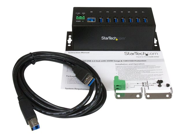 Industriell USB-A-hubb i metall med ESD-skydd och 350 W överspänningsskydd - Monterbar på DIN-skena, vägg eller skrivbord - TAA-kompatibel USB-expansionshubb - Hubb - 7 x SuperSpeed USB 3.0 - DIN-skenmonterbar, väggmonterbar - likström - för P/N: ITB20D3250, USB312SAT3CB, USB315CB2M, USBLT1MWS, USBLT2MBR, USBLTM1MBK, USBLTM1MWH