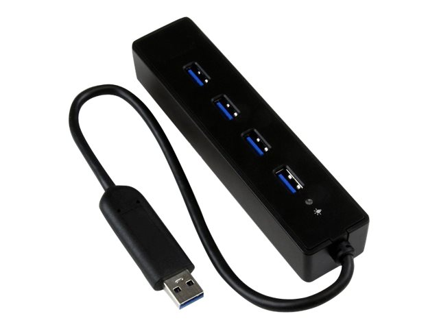 SuperSpeed Laptop USB Hub - Portable USB Splitter - Mini USB Hub (ST4300PBU3) - Hubb - 4 x SuperSpeed USB 3.0 - skrivbordsmodell - för P/N: FCREADMICRO3, MSDREADU3CA