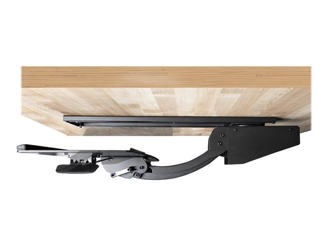 Höjdjusterbar bricka för tangentbord och mus, rörlig i alla riktningar, 25.4 x 66 cm plattform - Ergonomisk skrivbordsmonterad tangentbordsbricka med musmatta och handledsstöd - Kan lutas/vridas - Bord för tangentbord/mus - kan monteras under bord - svart
