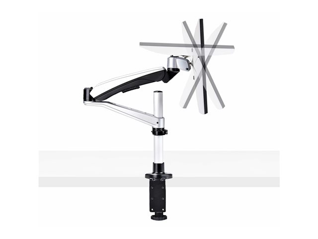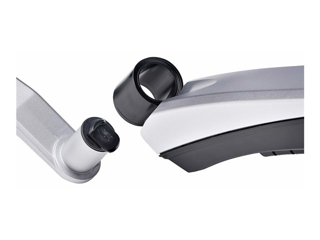 - Skrivbordsmonterbar design med ledad arm ger flexibla placeringsalternativ för att maximera skrivbordsutrymmet
