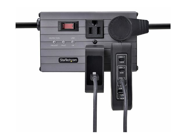 StarTech.com 140W USB-C väggladdare är utformad för bärbara datorer och utnyttjar GaN-teknik för effektiv strömförsörjning. Denna strömadapter stöder flera spänningsalternativ, inklusive 5 V, 9 V, 15 V, 20 V och 28 V, vilket gör den mångsidig för olika enheter. Med en robust uteffekt på 140 watt över fyra anslutningar, inklusive tre 24-pin USB-C-portar och en 4-pin USB Type-A-port, tillgodoser den en rad olika laddningsbehov. Säkerhet och tillförlitlighet är av yttersta vikt med funktioner som överspänningsskydd, överströmsskydd och övertemperaturskydd som garanterar en säker användarupplevelse. Den här väggladdaren uppfyller flera olika standarder såsom UL, TUV och FCC-ICES, vilket bekräftar att den uppfyller stränga säkerhetskrav. Dessutom erbjuder den programmerbar strömförsörjning (PPS) och snabbladdningskapacitet genom Power Delivery 3.1, vilket gör den till ett viktigt tillbehör för att strömförsörja enheter effektivt och säkert.